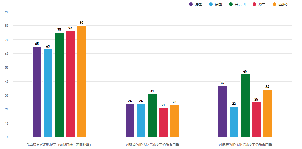 雖然消費(fèi)者有興趣嘗試奶酪新品,但對健康和環(huán)境的擔(dān)憂促使一些消費(fèi)者減少奶酪消費(fèi),這表明更健康、更可持續(xù)的奶酪存在機(jī)會。