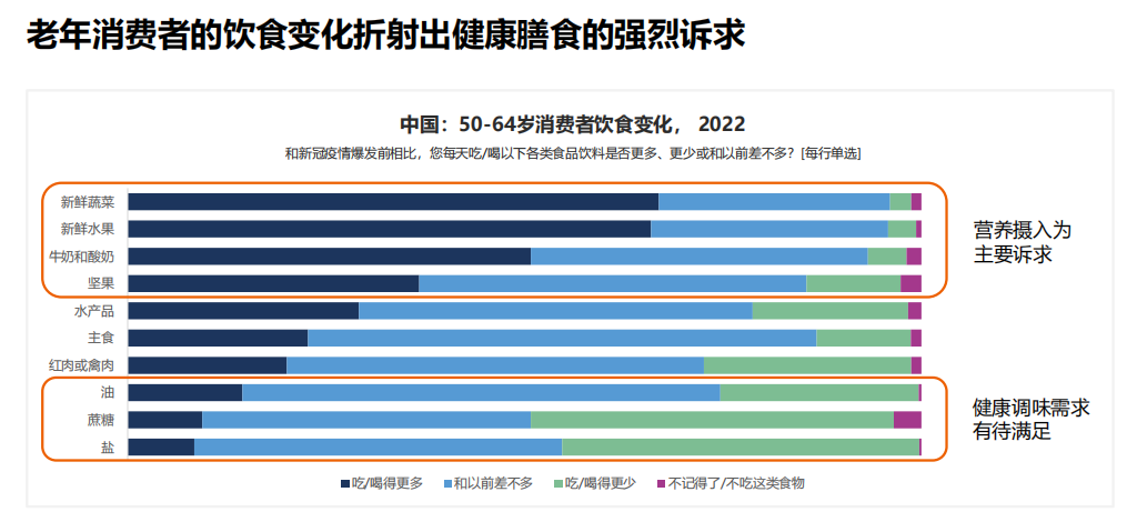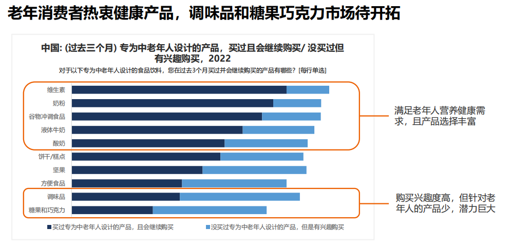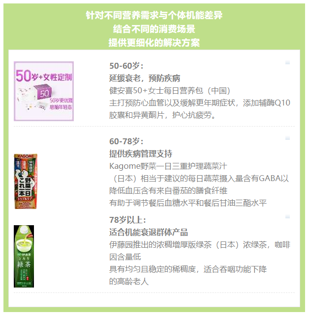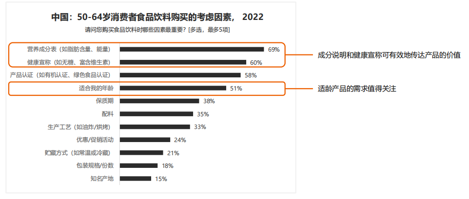 營養(yǎng)成分和健康宣稱是老年消費者的普遍訴求,適齡宣稱成為新的機(jī)會點。