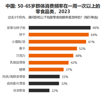 糖果巧克力成為老年消費者有興趣購買的產(chǎn)品種類,位列第二(39%)。