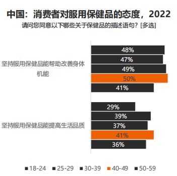 消費觀念和健康觀念緊隨時代:新中年群體具有更趨理性的飲食習(xí)慣和健康意識,且他們資產(chǎn)相對富裕,健康消費旺盛,因此擁有巨大商業(yè)價值。