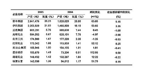 2005年中國(guó)液態(tài)奶產(chǎn)量排行榜