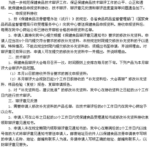 關(guān)于保健食品技術(shù)審評有關(guān)問題的通告