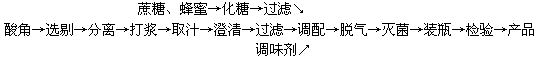 2.1.原料收購(gòu)時(shí),選擇果大,飽滿,無(wú)病蟲(chóng)害和霉?fàn)€變質(zhì)的果實(shí)。分離果肉,除去莢殼和種子,加入果肉9倍的凈水,浸泡4h后,打漿5min。先用紗布過(guò)濾,再壓榨取汁,將兩部分汁液混合,用200目的濾布過(guò)濾。采用澄清劑對(duì)果汁進(jìn)行澄清處理,過(guò)濾備用。