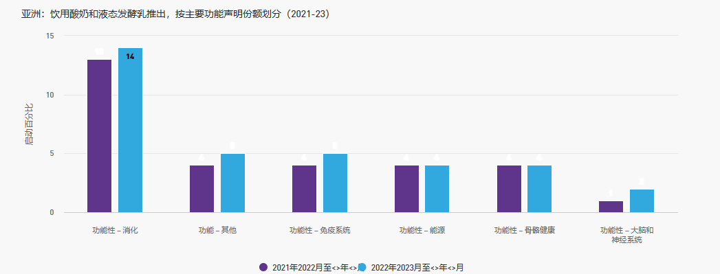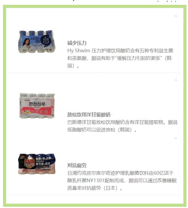 雖然消費者最有可能喝酸奶來增強免疫系統(tǒng),但乳制品飲料也追捧其他功能和健康益處。這凸顯了消費者如何將乳制品飲料視為應對現代生活方式挑戰(zhàn)的首選。