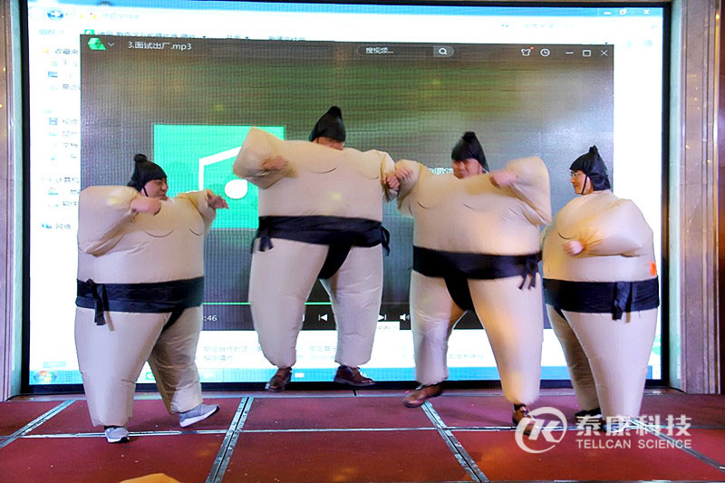 最讓人眼紅亢奮的當(dāng)屬晚會的抽獎了,除了往常的一/二/三等獎,今年還特設(shè)了特別幸運(yùn)獎,人人參與,人人抱獎。晚會的高潮是各位老總帶來的《相撲舞》,這么可愛憨厚的形象,你能想象的到他們是引領(lǐng)我們企業(yè)發(fā)展的老總嗎?